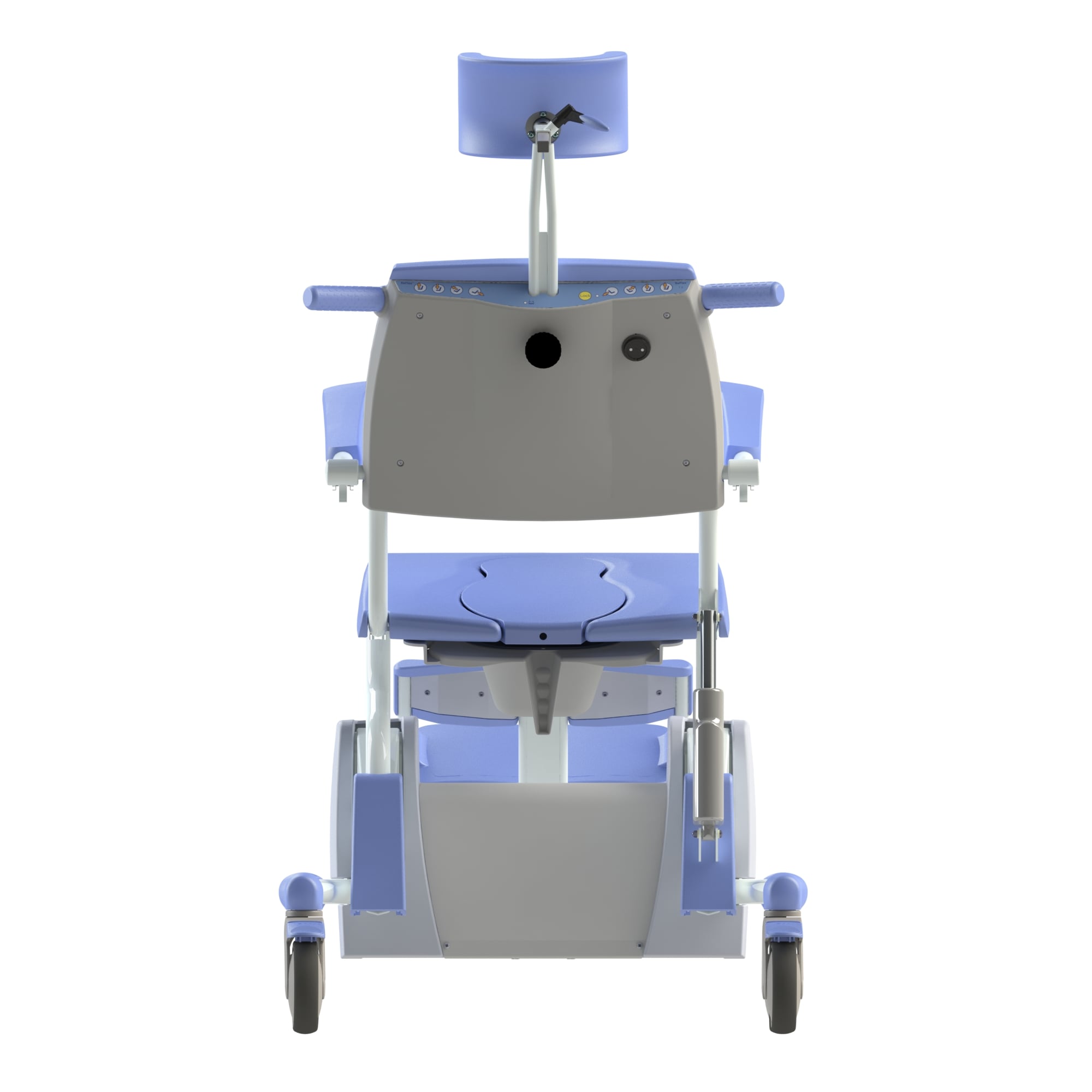 The height-adjustable, electric shower-toilet chair Reflex is a medical device for caring for and washing clients in an ergonomically responsible manner. Comfort is the primary consideration for both the client and the carer. The Reflex can also be used as a toilet chair, in combination with a bedpan / bucket