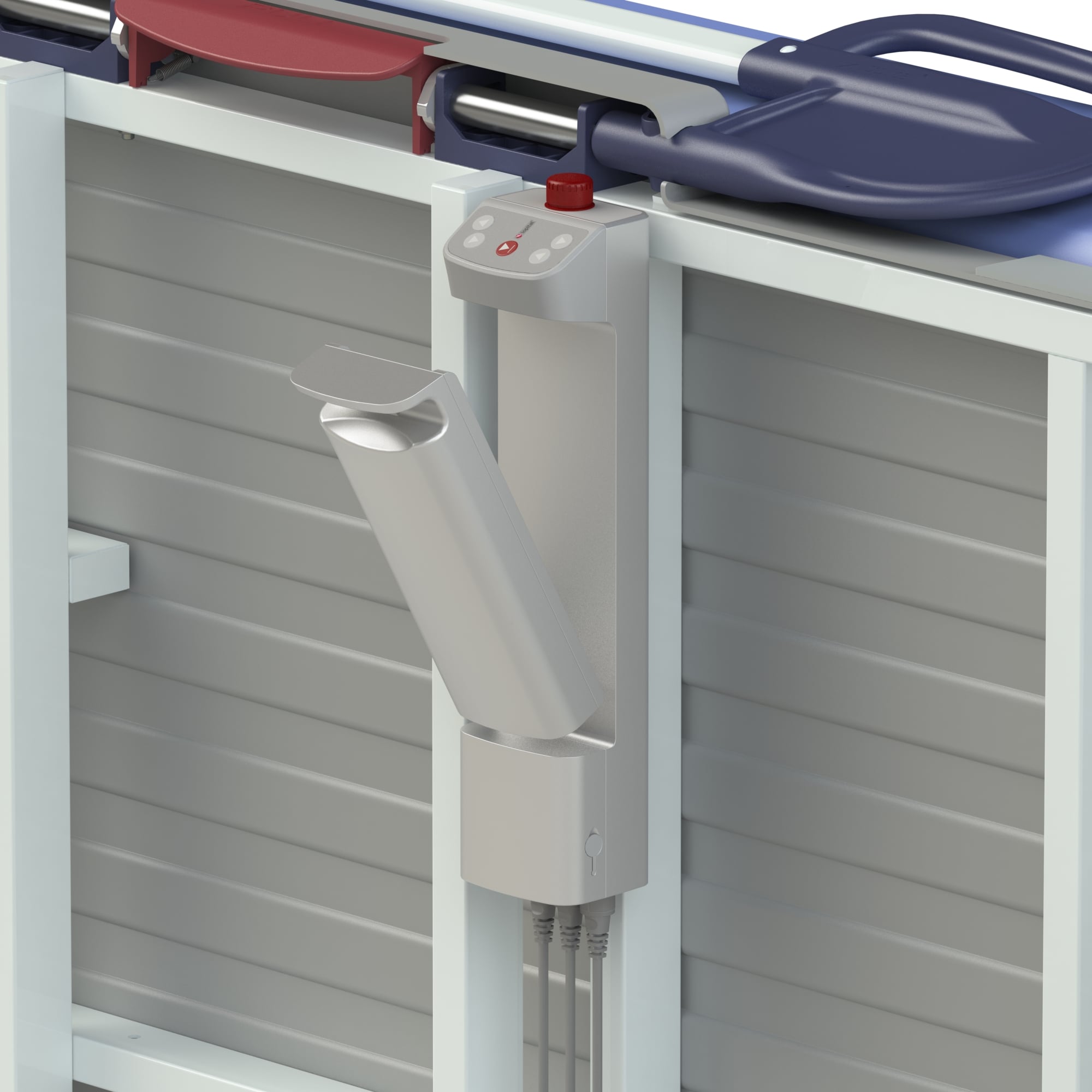 The Sirocco Basic shower stretcher is designed for ergonomic and hygienic care. This wall-mounted stretcher is electrically height adjustable and equipped with an antibacterial mattress, safe side rails, and a corrosion-resistant frame. The combination of durability and comfort makes this model ideal for long-term use in care environments. Additionally, the surface is provided with an antibacterial coating that contributes to a hygienic care environment. Suitable for clients up to 227 kg. The electric control allows effortless height adjustment, reducing physical strain for the caregiver. In addition, the corrosion-resistant frame contributes to the long lifespan and reliability of the stretcher.